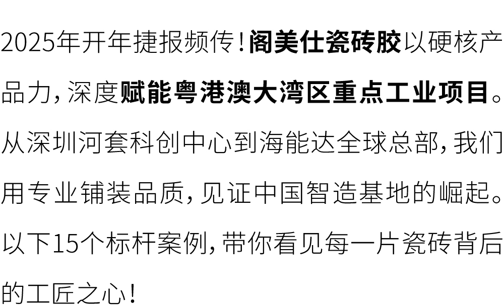 2025年开年捷报频传!阁美仕瓷砖胶以硬核产品力,深度赋能粤港澳大湾区重点工业项目。