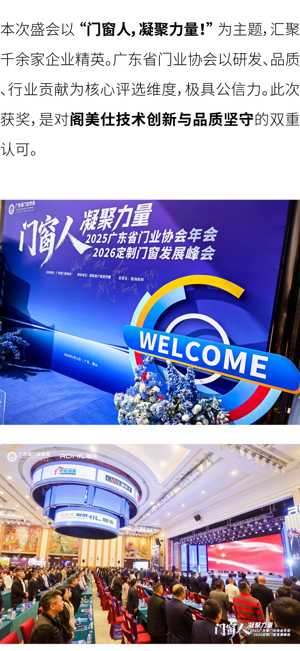 行业内卷加剧,阁美仕以坚守创新破局;品质共:识之下,凭专业匠心领航。2026年1月13日,2025广东省门业协会年会暨2026定制门窗发展峰会在佛山启幕,阁美仕凭借深耕行业二十载的积淀与硬核实力,斩获“2025年度优秀企业”称号,成为行业标杆。
