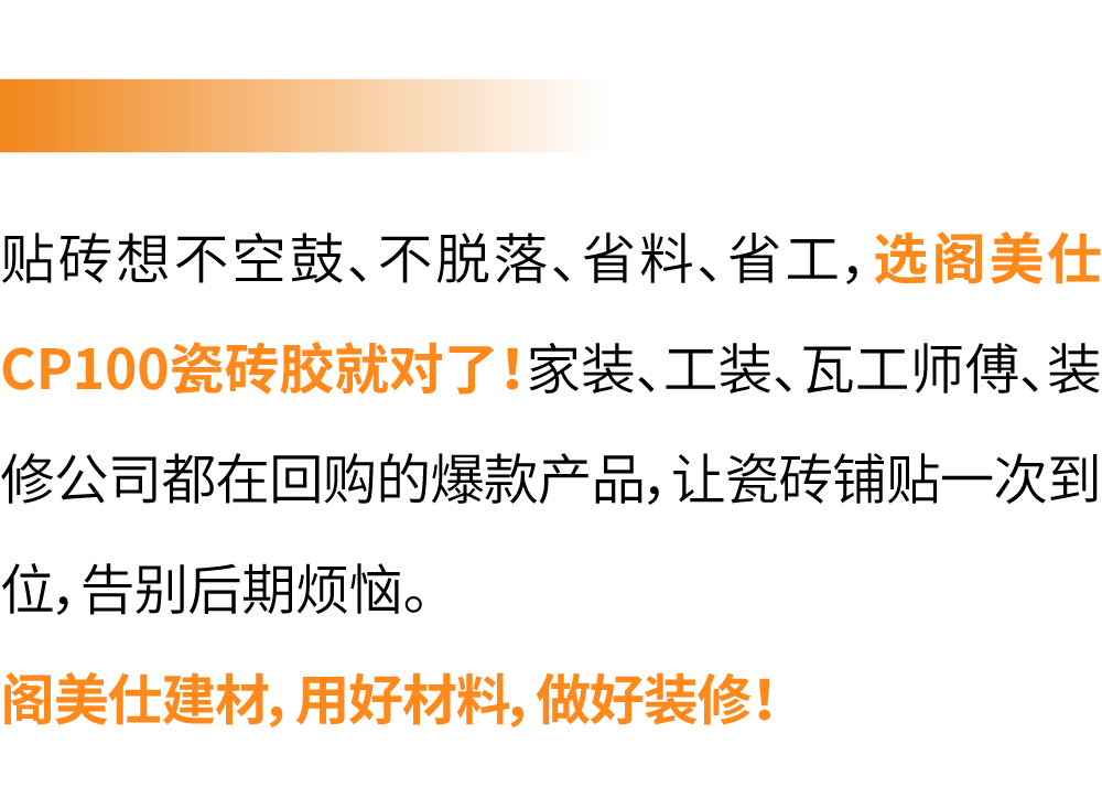 阁美仕 CP100 瓷砖胶|薄贴更省心,粘得牢不空鼓,装修人都在用!