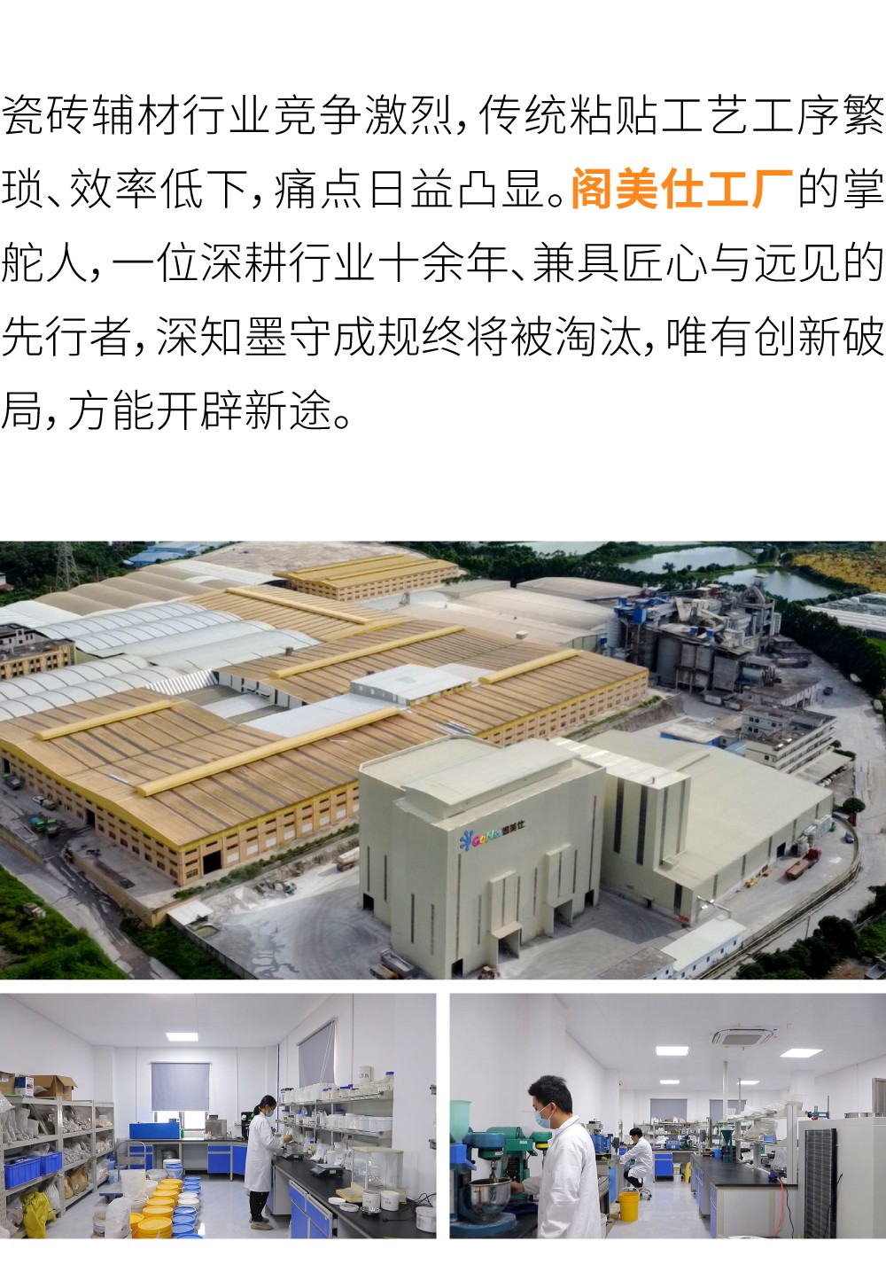 瓷砖辅材行业竞争激烈,传统粘贴工艺工序繁琐、效率低下,痛点日益凸显。阁美仕工厂的掌舵人,一位深耕行业十余年、兼具匠心与远见的先行者,深知墨守成规终将被淘汰,唯有创新破局,方能开辟新途。
